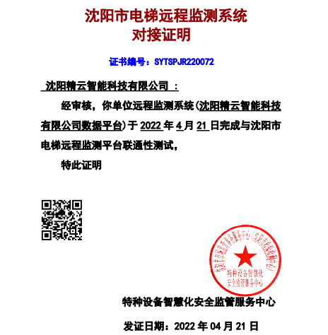 電梯物聯(lián)網(wǎng)設(shè)備通過沈陽市電梯遠(yuǎn)程監(jiān)測系統(tǒng)驗(yàn)證